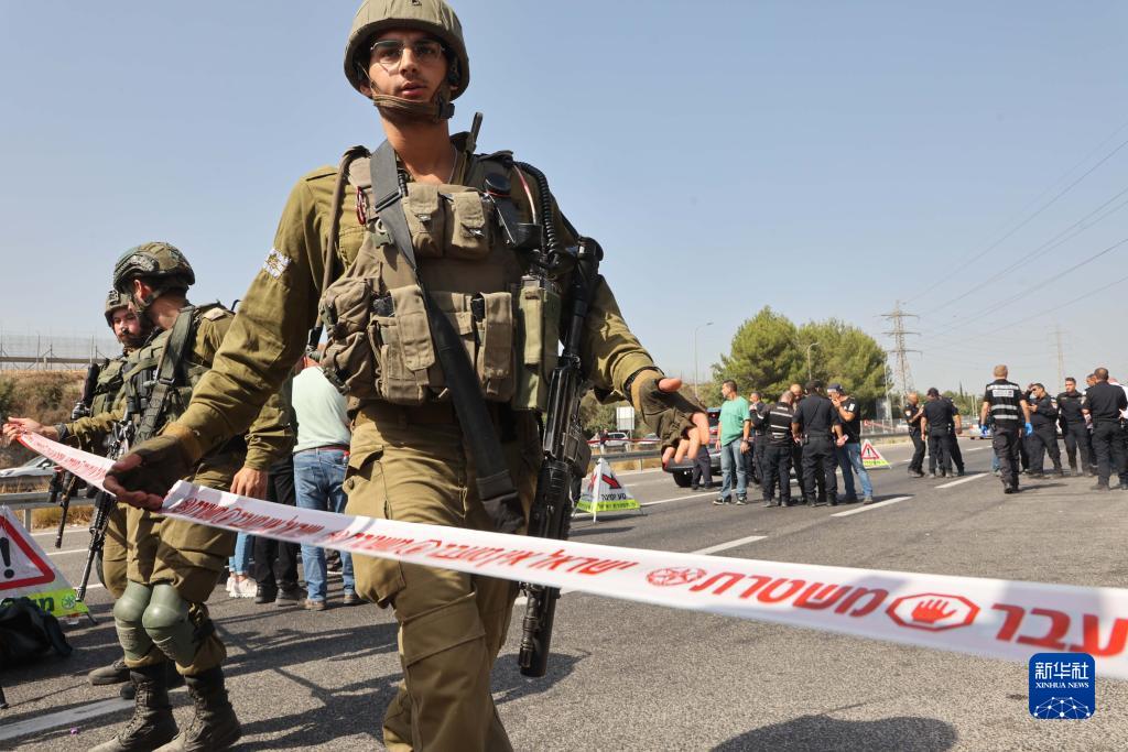 8月31日,以色列士兵在以色列中部城市莫迪因附近的襲擊事件現場(chǎng)警戒。