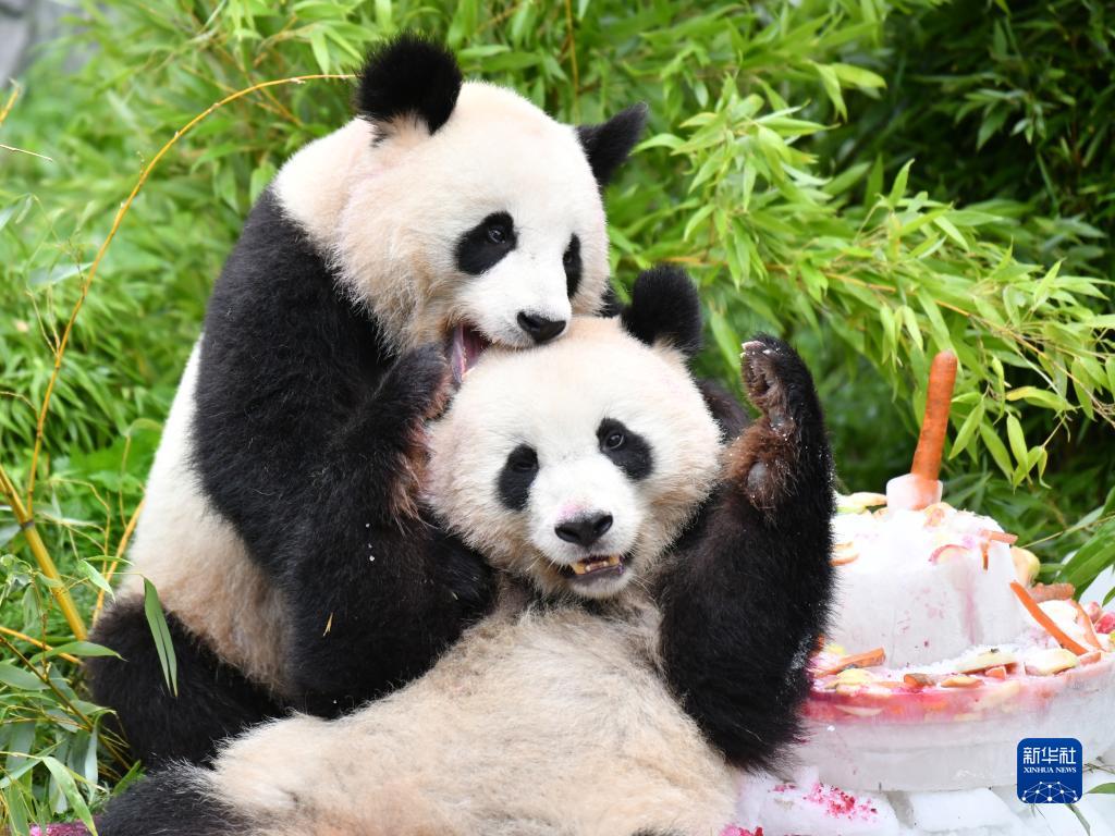 當日,在德國出生的大熊貓雙胞胎兄弟“夢(mèng)想”和“夢(mèng)圓”迎來(lái)4歲生日,柏林動(dòng)物園為它們舉辦了慶?;顒?dòng)。