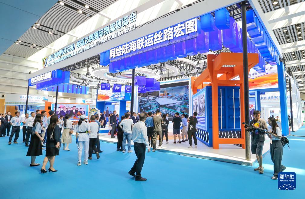 8月31日,觀(guān)眾在第八屆中國(連云港)絲綢之路國際物流博覽會(huì )上參觀(guān)。