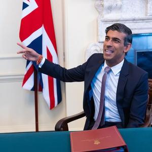 這是8月31日在英國倫敦首相府拍攝的英國首相蘇納克(右)和格蘭特·沙普斯。