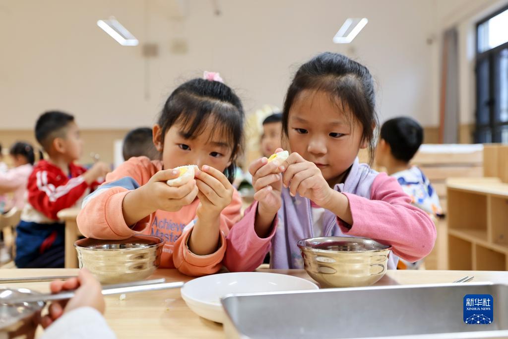 9月1日,在云南省昆明市西山區前衛幼兒園,小朋友們在吃早餐。
