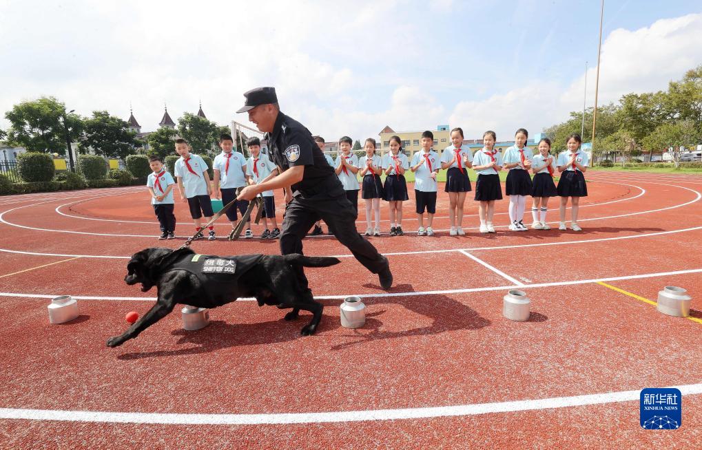 9月1日,在浙江省湖州市德清縣禹越鎮徐家莊中心小學(xué)“開(kāi)學(xué)第一課 禁毒進(jìn)校園”宣傳活動(dòng)上,德清縣公安局禹越派出所一只緝毒犬在進(jìn)行嗅毒表演。
