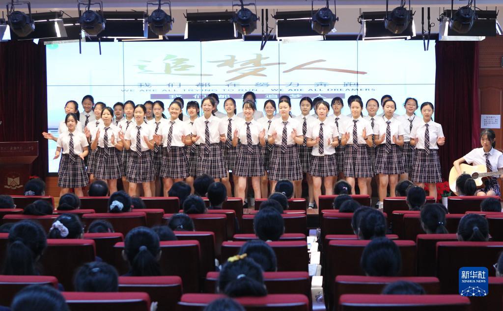 9月1日,北京市北師大實(shí)驗華夏女中的學(xué)生在開(kāi)學(xué)典禮上合唱《我們都是追夢(mèng)人》。