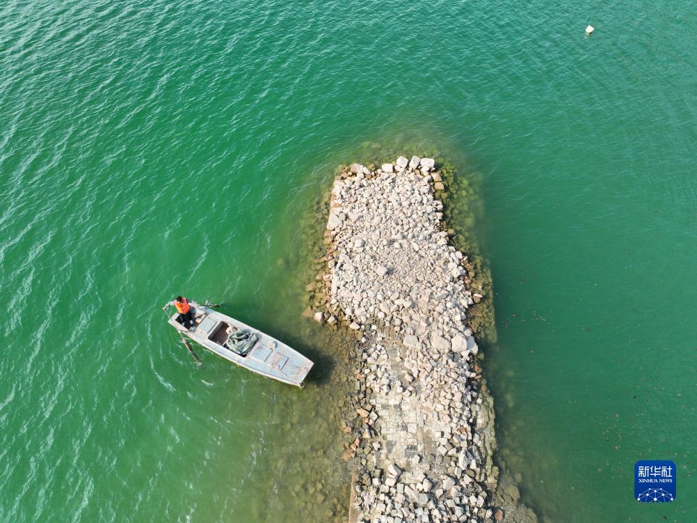 8月30日,衡丙三將船靠岸,準備巡查長(cháng)城(無(wú)人機照片)。