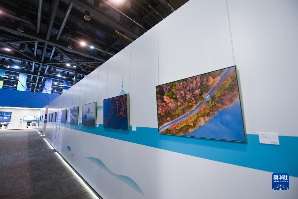 這是主媒體中心工作間墻壁上懸掛的浙江風(fēng)光照片(9月1日攝)。