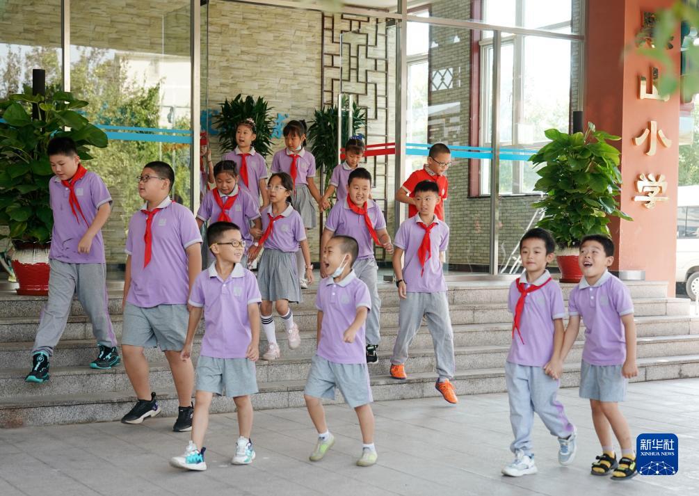 9月1日,在京師實(shí)驗中學(xué)借址開(kāi)學(xué)的門(mén)頭溝區黑山小學(xué)的學(xué)生在校園中行走。