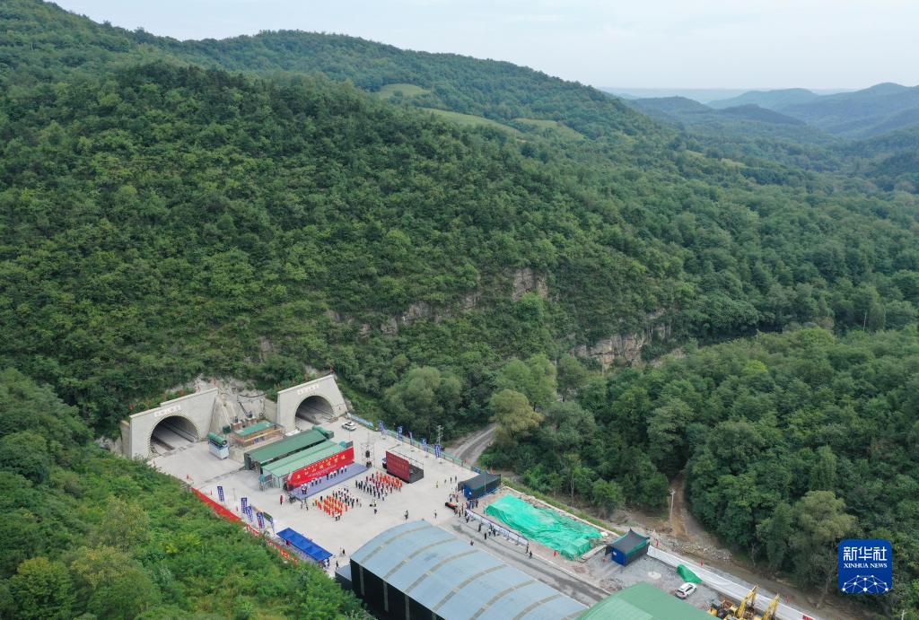 這是位于陜西省寶雞市麟游縣的麟法高速石臼山隧道(無(wú)人機照片,9月1日攝)。