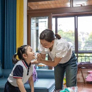 9月1日,在重慶市九龍坡區,媽媽為吃完早餐的豆豆擦嘴。