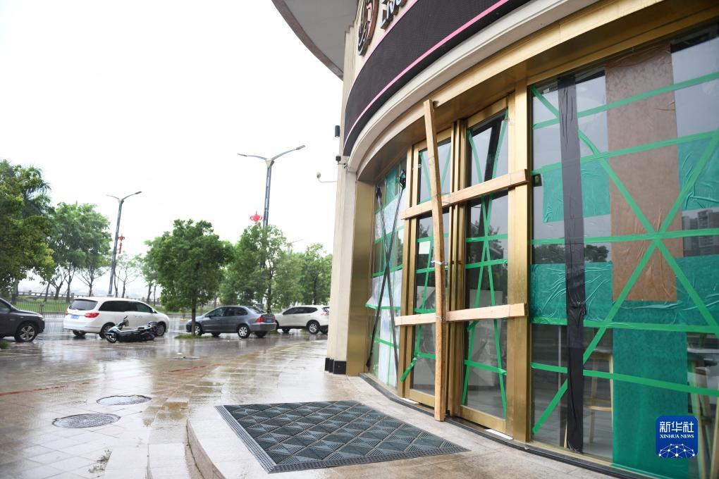 9月1日,在廣東省汕尾市城區,商鋪加固門(mén)窗應對臺風(fēng)。