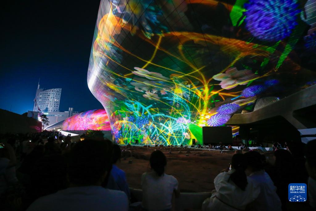 9月1日,人們在韓國首爾東大門(mén)設計廣場(chǎng)觀(guān)看燈光秀。