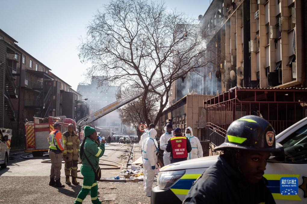 這是8月31日在南非約翰內斯堡拍攝的火災事故現場(chǎng)。