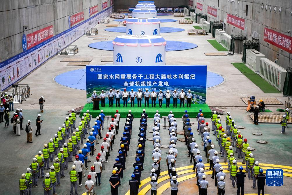 9月2日拍攝的廣西大藤峽水利樞紐全部機組投產(chǎn)發(fā)電慶祝儀式現場(chǎng)。