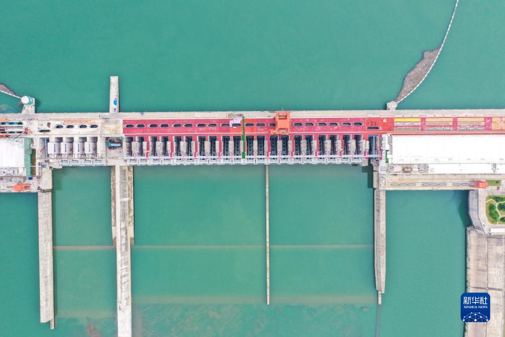 9月2日拍攝的廣西大藤峽水利樞紐泄水閘(無(wú)人機照片)。