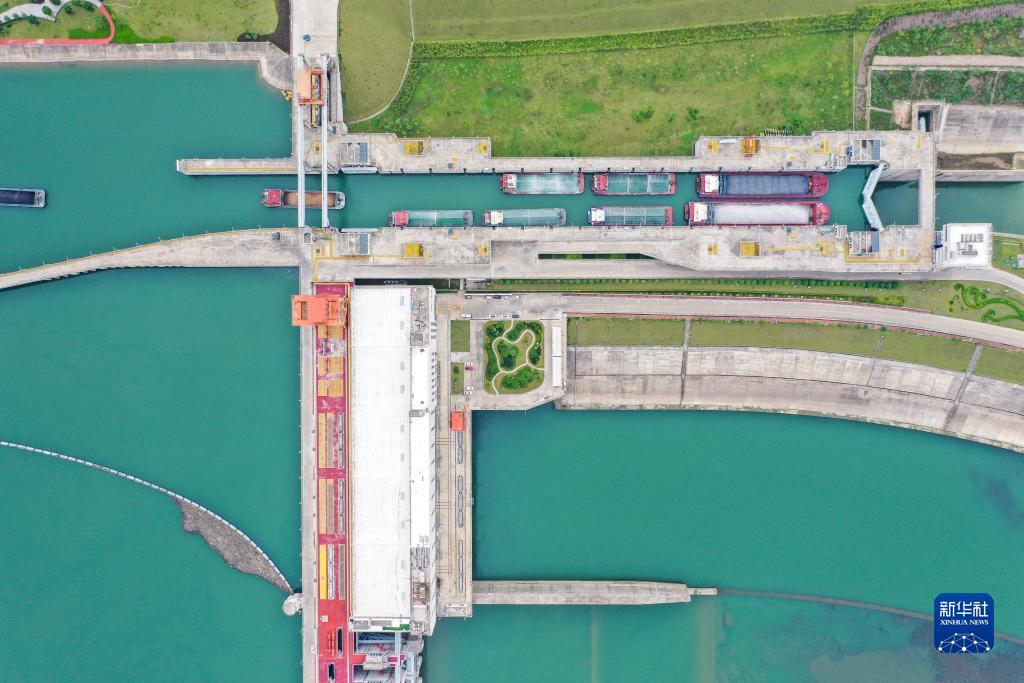9月2日拍攝的廣西大藤峽水利樞紐船閘(無(wú)人機照片)。