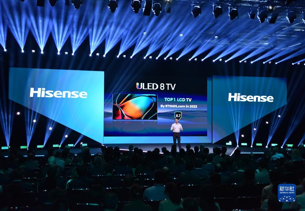 這是9月1日在德國柏林國際消費電子展拍攝的海信主題演講現場(chǎng)。