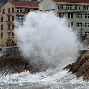 9月2日,浙江省溫嶺市石塘鎮金沙灘海域掀起巨大浪花。
