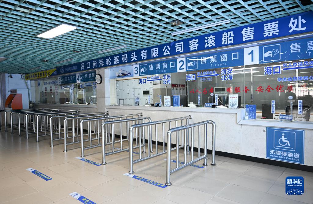9月2日下午在海南省??谑行阌⒏叟臄z的空蕩蕩的售票大廳。