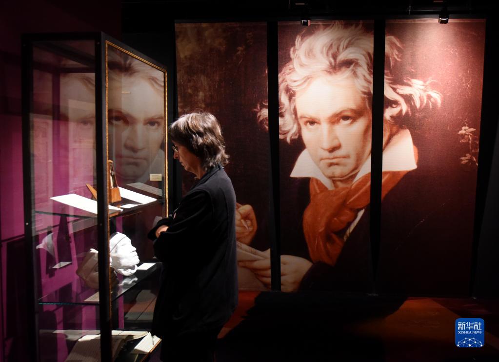 9月2日,一名觀(guān)眾在奧地利維也納“音樂(lè )之家”貝多芬展廳參觀(guān)展品。