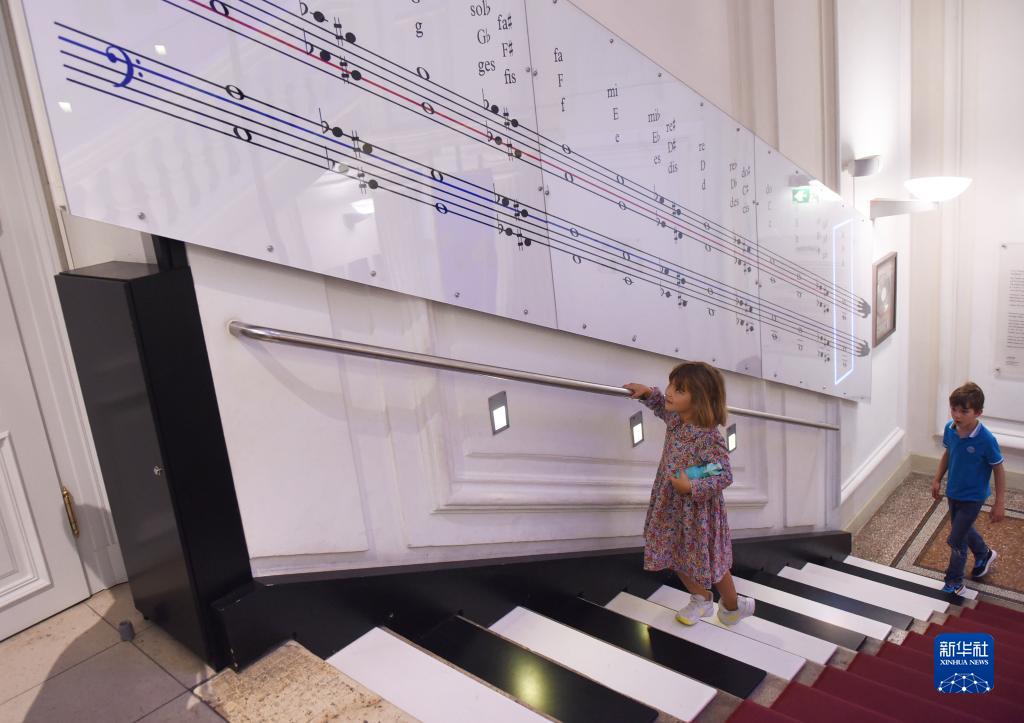 9月2日,在奧地利維也納“音樂(lè )之家”,觀(guān)眾在爬“音樂(lè )階梯”。