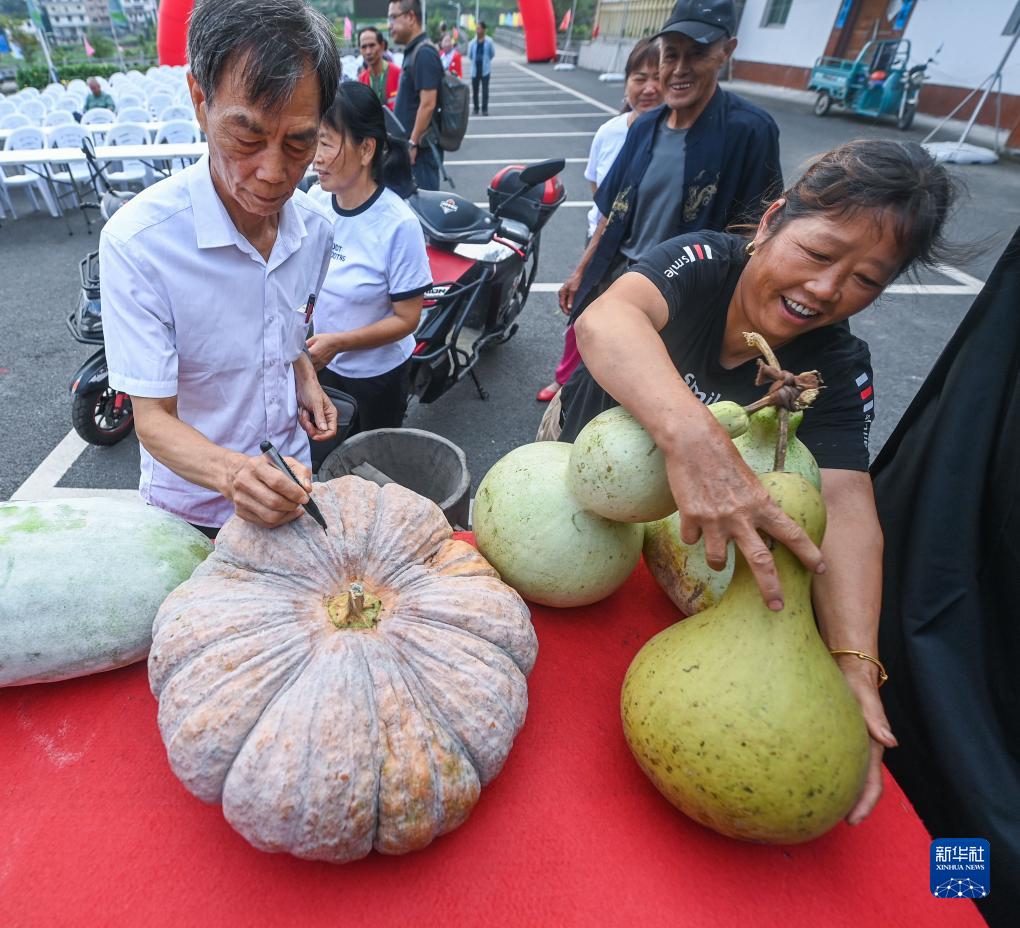 9月3日,王阜村的村民將自家最大的瓜果拿到“報熟節”現場(chǎng)參加果蔬比賽。