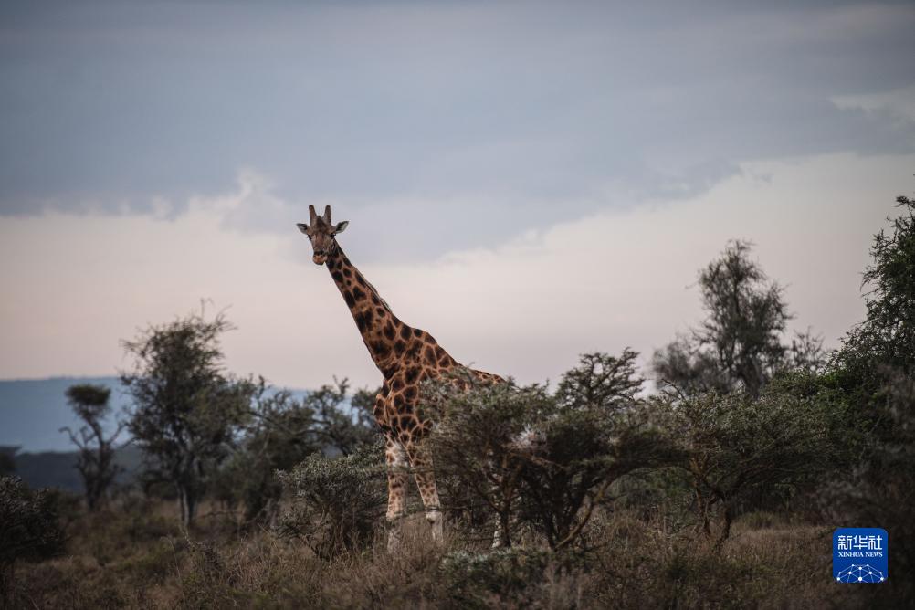 這是9月2日在肯尼亞納庫魯湖國家公園拍攝的長(cháng)頸鹿。