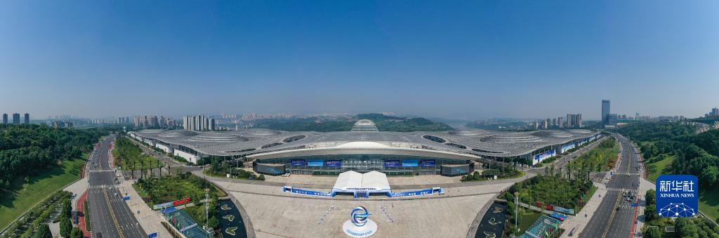 這是9月3日拍攝的2023中國國際智能產(chǎn)業(yè)博覽會(huì )主會(huì )場(chǎng)外景(無(wú)人機拼接照片)。