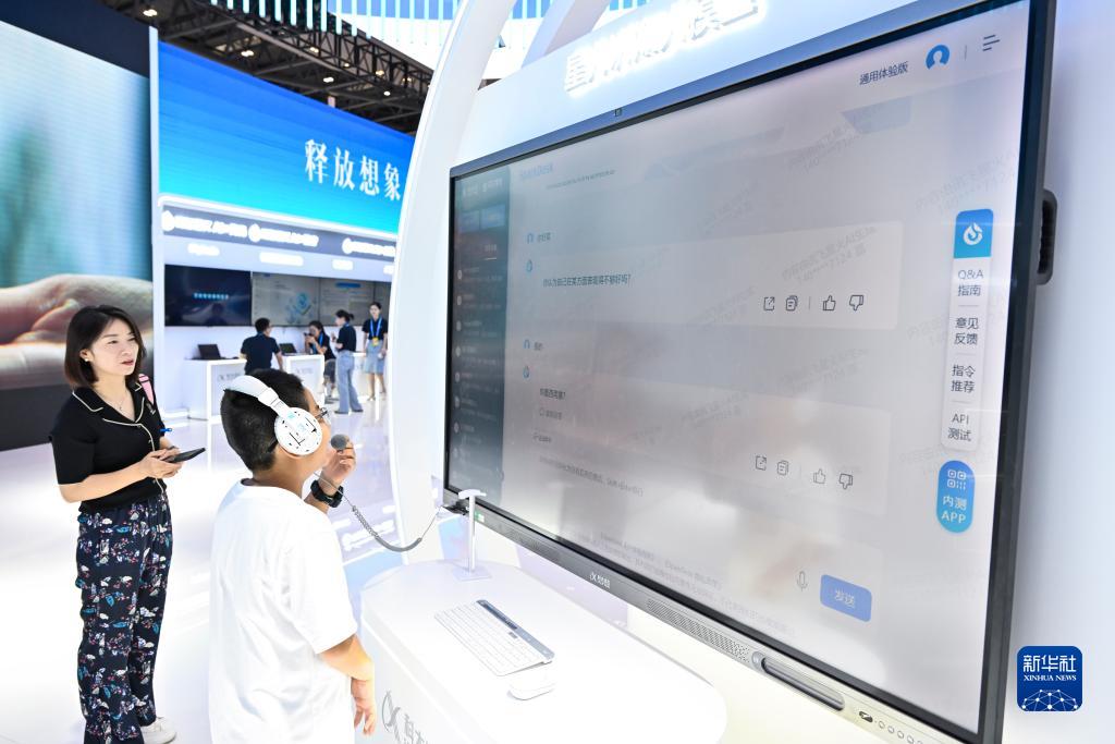 9月3日,小朋友在2023中國國際智能產(chǎn)業(yè)博覽會(huì )會(huì )場(chǎng)體驗訊飛星火認知大模型。