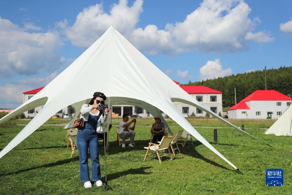 9月1日,游客在阿爾山鹿角灣溫泉度假營(yíng)地拍照。