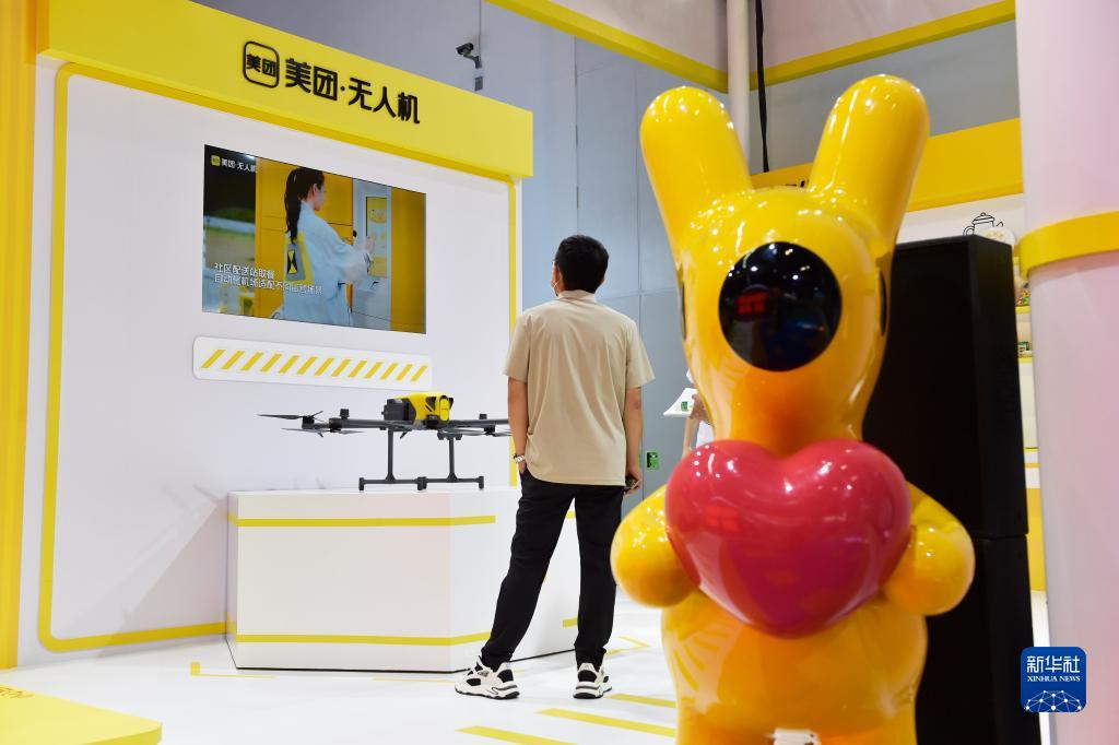 9月4日,在2023年服貿會(huì )國家會(huì )議中心美團展臺,觀(guān)眾觀(guān)看一款無(wú)人機的視頻介紹。
