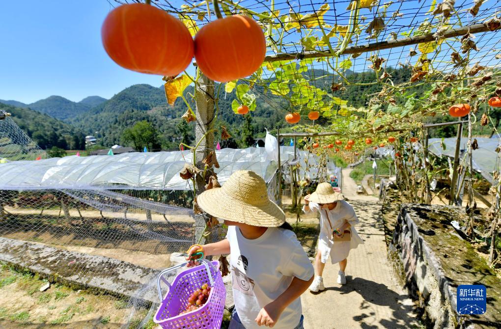 9月3日,游客在湖北省宣恩縣椒園鎮一采摘園里游玩。