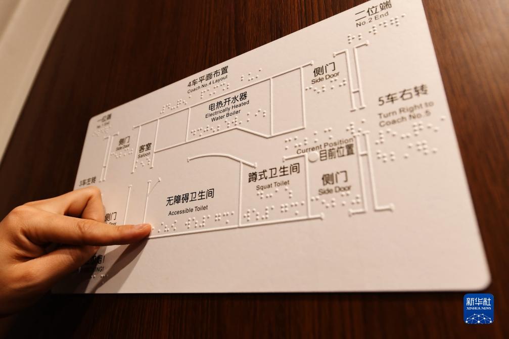 9月4日在G55401次復興號智能動(dòng)車(chē)組車(chē)廂內拍攝盲文觸摸指示牌。