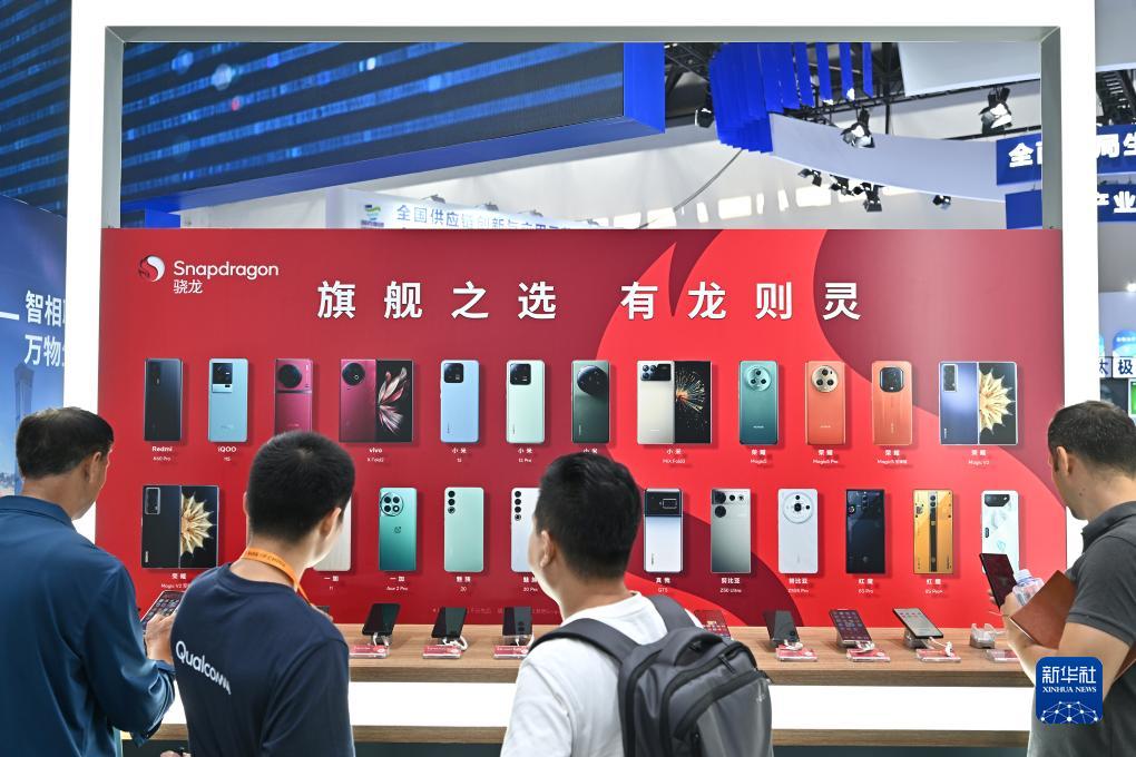 9月4日,參觀(guān)者在國家會(huì )議中心的高通展臺了解搭載了高通驍龍芯片的手機。