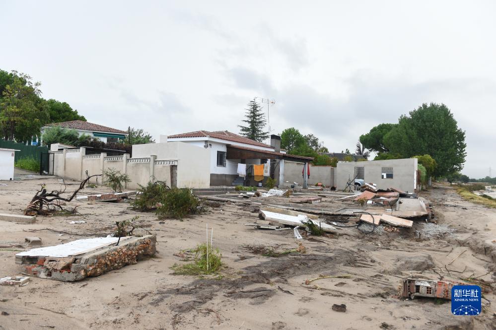 這是9月4日在西班牙馬德里比利亞曼塔鎮拍攝的洪水過(guò)后的民居。