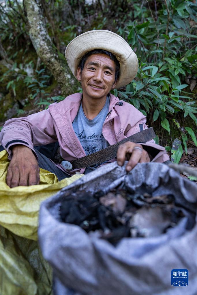 一位“采山人”在展示自己采集到的石耳(9月2日攝)。新華社記者 孫非 攝