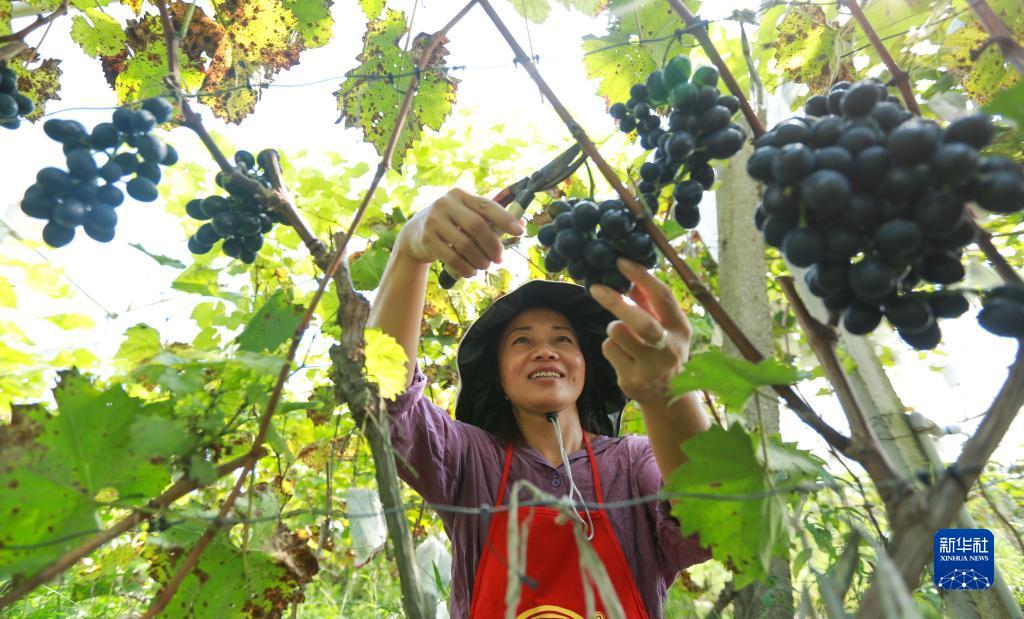 9月5日,村民在貴州省都勻市勻東鎮馬寨村采摘葡萄。