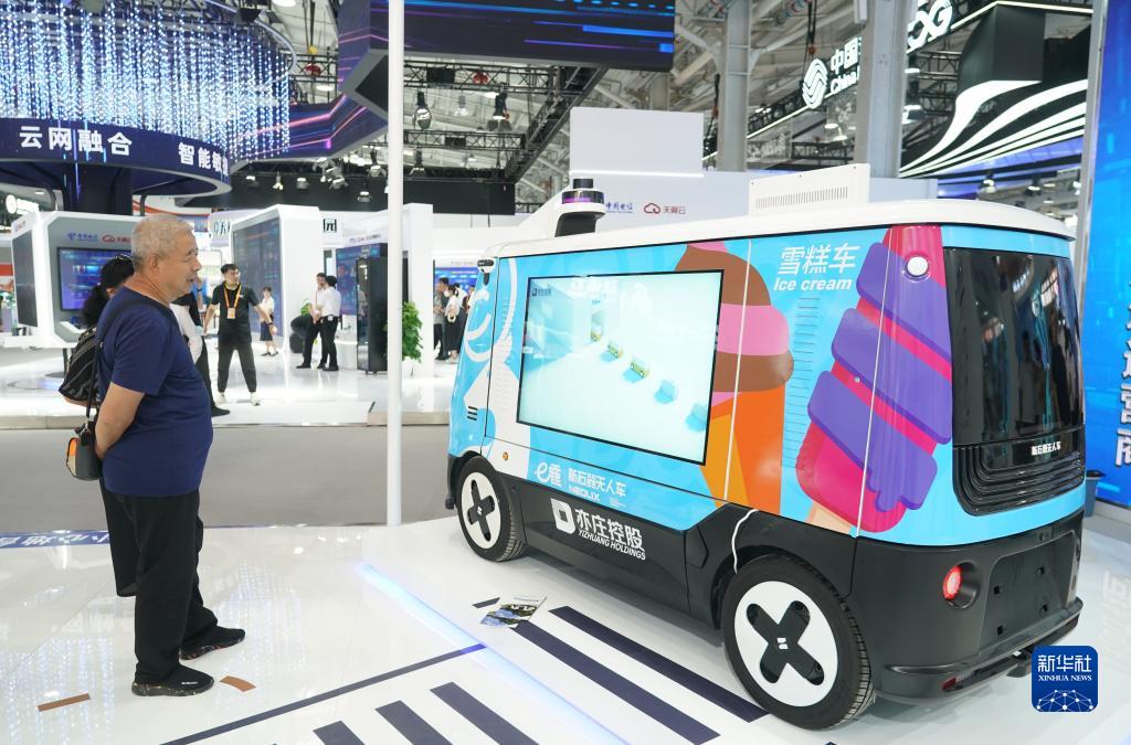 9月5日,觀(guān)眾在服貿會(huì )首鋼園區了解一款無(wú)人車(chē)。