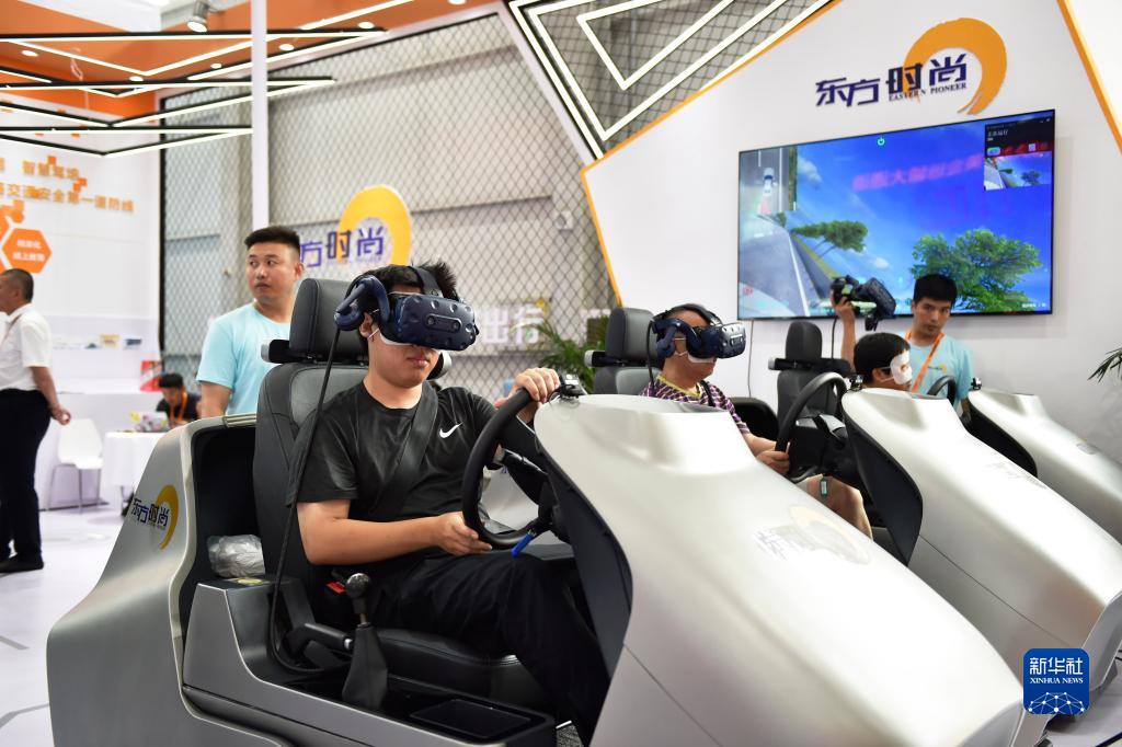 9月5日,觀(guān)眾在服貿會(huì )首鋼園區體驗東方時(shí)尚駕校的vr模擬駕駛機。