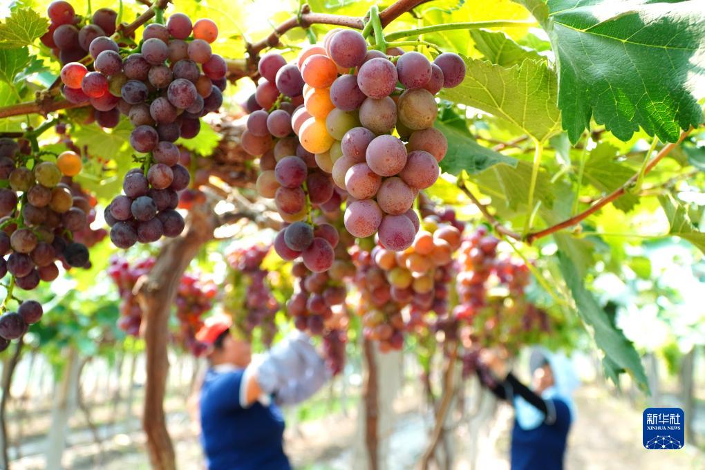 近日,山東省高密市種植的葡萄進(jìn)入成熟期,葡萄種植戶(hù)們忙著(zhù)采收成熟的葡萄供應市場(chǎng)。山東省高密市近年來(lái)因地制宜發(fā)展葡萄種植業(yè),目前全市葡萄種植面積超過(guò)7000畝,帶動(dòng)當地農戶(hù)增收致富。