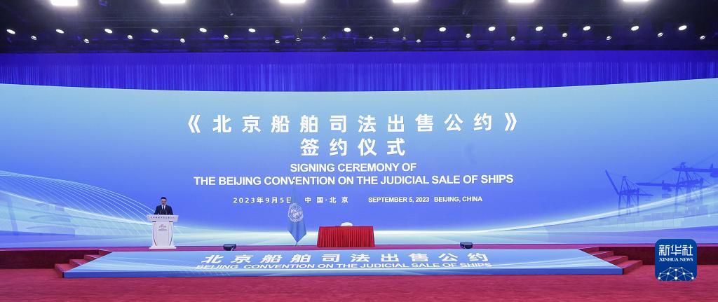 9月5日在北京拍攝的《北京船舶司法出售公約》簽約儀式現場(chǎng)。