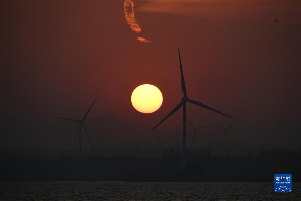 這是9月5日在河北省張家口市懷來(lái)縣拍攝的夕陽(yáng)下的官廳水庫。