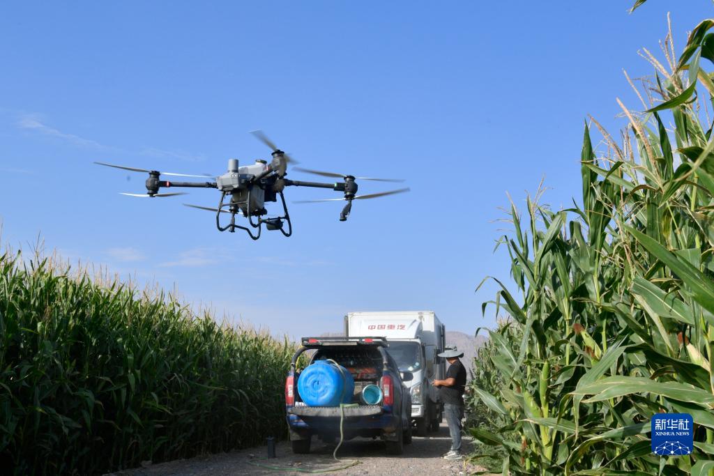 9月5日,在山丹縣位奇鎮十里堡村,技術(shù)人員開(kāi)展“一噴多促”作業(yè)。
