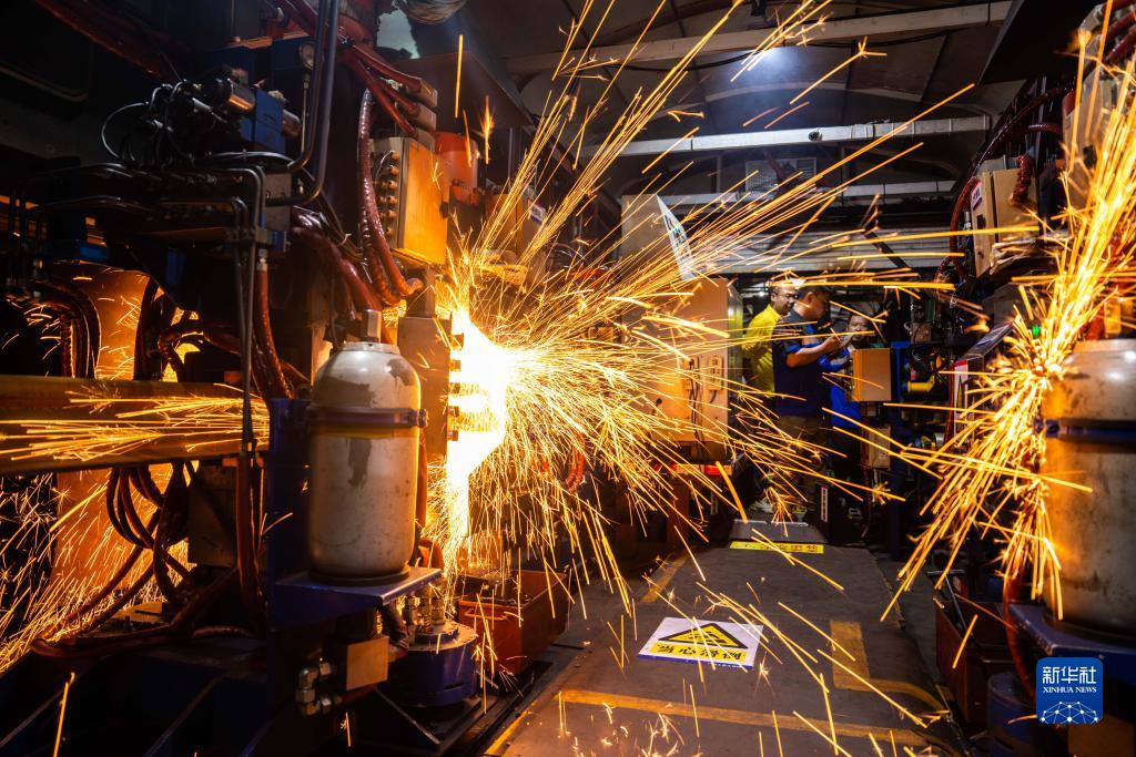 9月6日凌晨,在京廣高鐵株洲西至衡山西區間,鐵路工人操作車(chē)載焊機進(jìn)行焊軌作業(yè)。