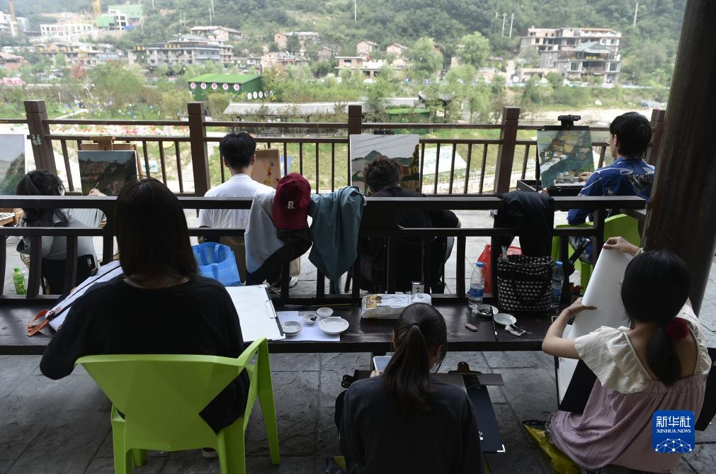 9月5日,學(xué)生在林州市石板巖鎮寫(xiě)生。