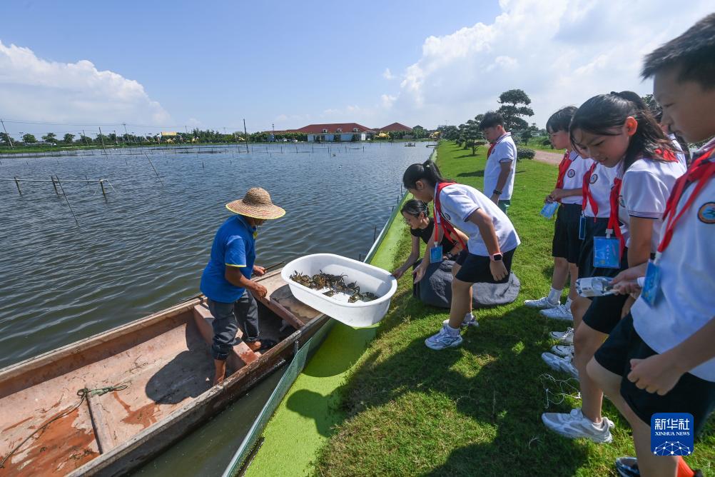 9月6日,太湖小學(xué)的學(xué)生們參觀(guān)湖州市高新區楊溇村楊桂珍大閘蟹產(chǎn)業(yè)基地。