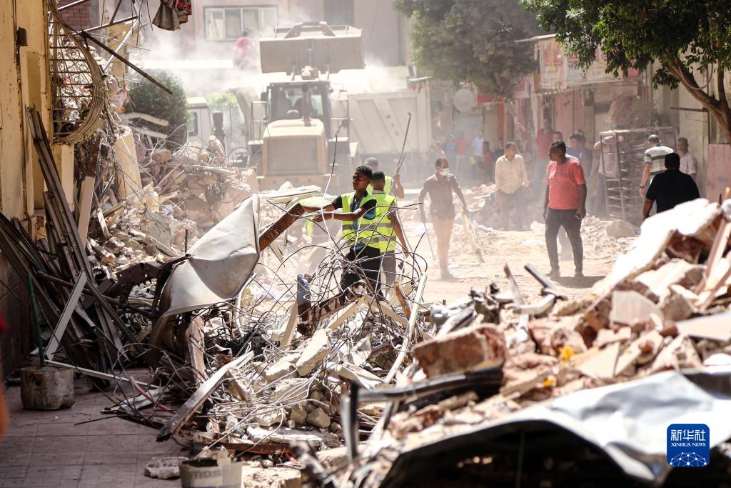 9月6日,救援人員在埃及開(kāi)羅的樓房倒塌現場(chǎng)工作。