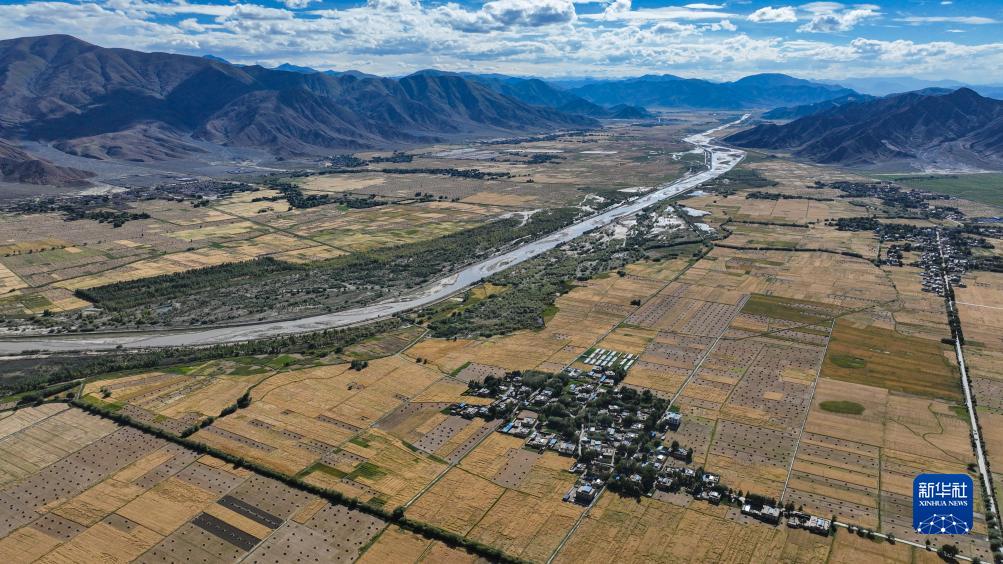 西藏日喀則市年楚河流域糧食長(cháng)勢喜人(9月6日攝 無(wú)人機照片)。