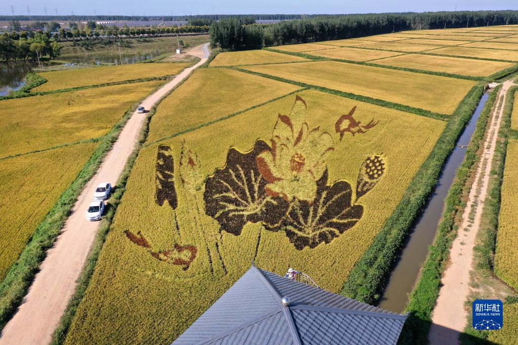 初秋時(shí)節,遼寧省鞍山市臺安縣遼河文化旅游景區的稻田畫(huà)吸引不少游客前來(lái)參觀(guān)游覽。由多種顏色組成的巨型稻田畫(huà)勾勒出豐收壯美景象。