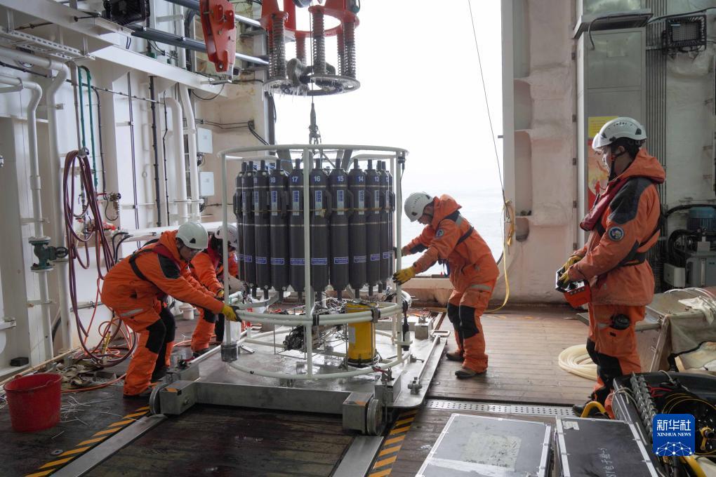 這是科考隊員在北極點(diǎn)附近執行海洋綜合調查作業(yè)(9月5日攝)。