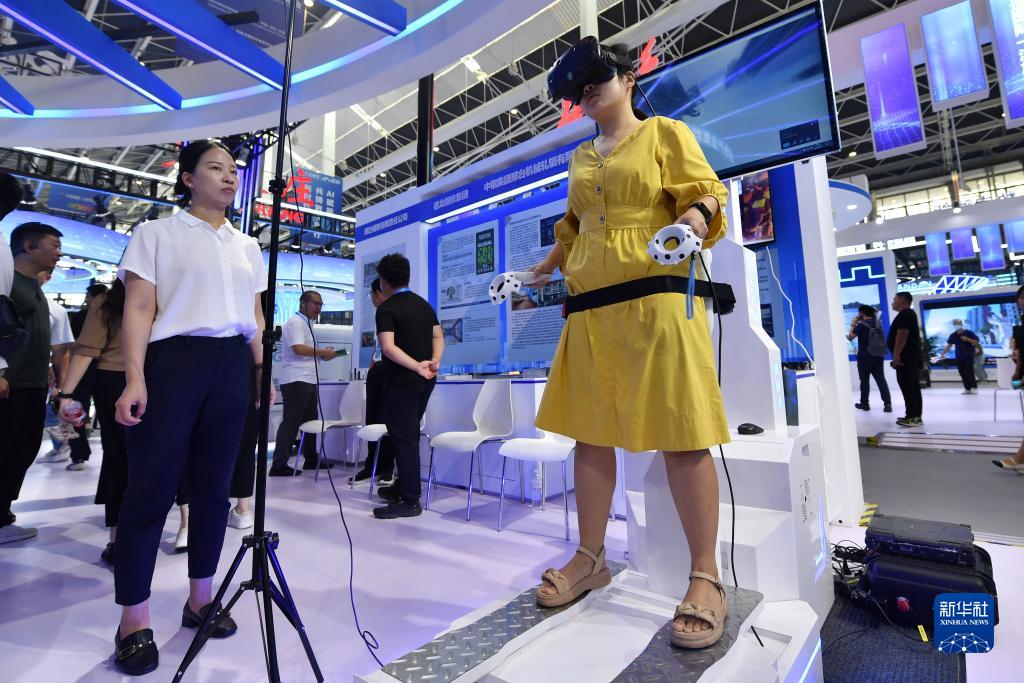 9月7日,參觀(guān)者在2023中國國際數字經(jīng)濟博覽會(huì )上體驗VR滑雪模擬器。