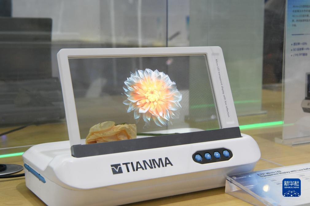 這是9月7日在“2023世界顯示產(chǎn)業(yè)大會(huì )新型顯示創(chuàng )新成果展”現場(chǎng)拍攝的8.75"Micro-LED透明低反顯示。